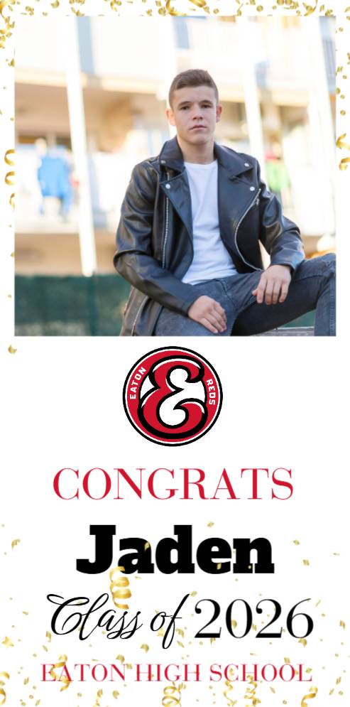 Eaton HS Graduation Congrats Photo Door Banner measures 2’x 4′ and is ready for hanging inside or out.