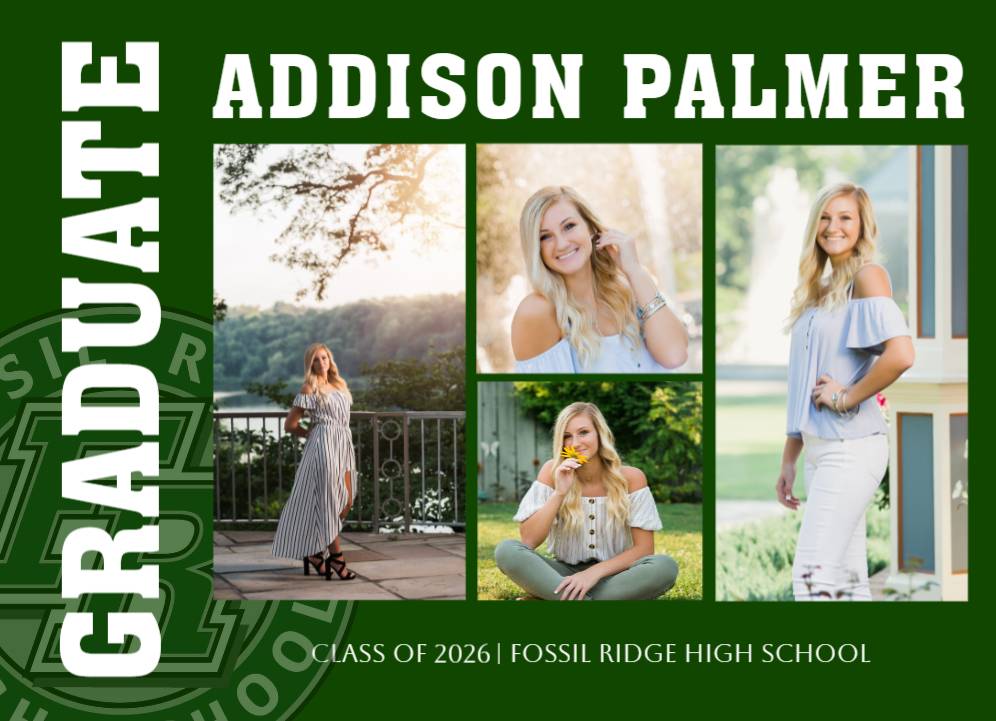 Celebrate your Fossil Ridge High School graduate with this 4 photo graduation announcement.