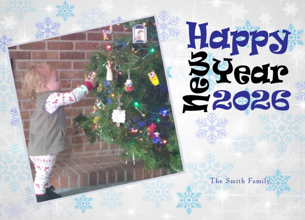 This Happy New Year Photo Card can be customized with your family names and you can upload 1 photo. You can also add additional information on the back of the card as well as add your return address to the envelopes.