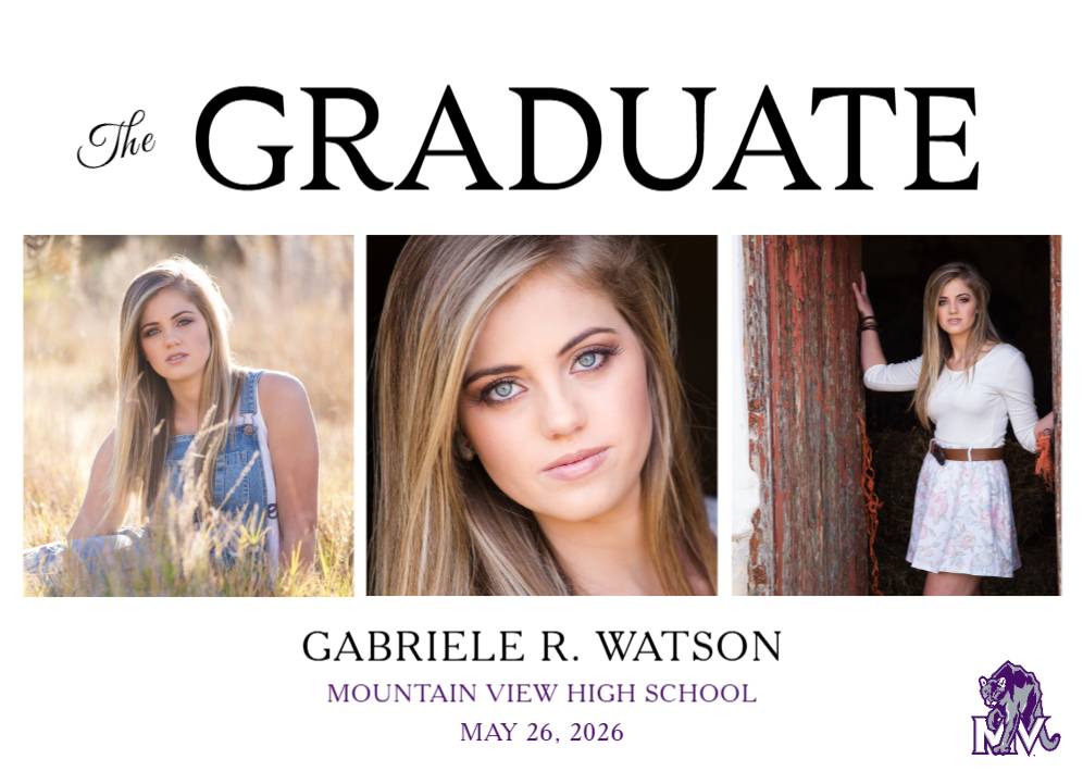 Celebrate your Mountain View High School Mountain Lions graduate with this 3 photo graduation announcement.