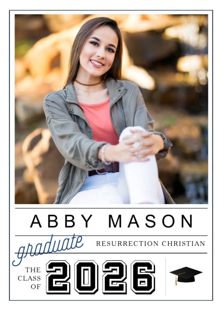 Celebrate your Resurrection Christian High School graduate with this photo graduation announcement.