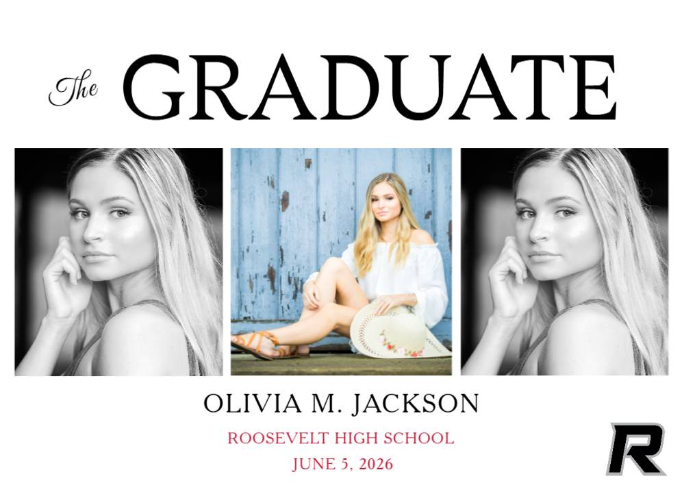 Celebrate your Roosevelt High School graduate with this 3 photo graduation announcement.