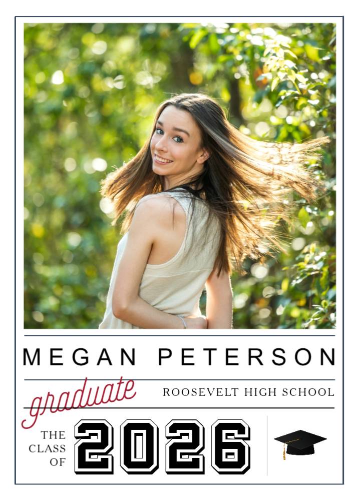 Celebrate your Roosevelt High School graduate with this 1 photo graduation announcement.