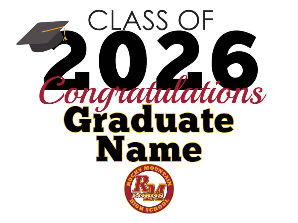 Rocky Mountain High School Class of Congratulations Name yard sign.