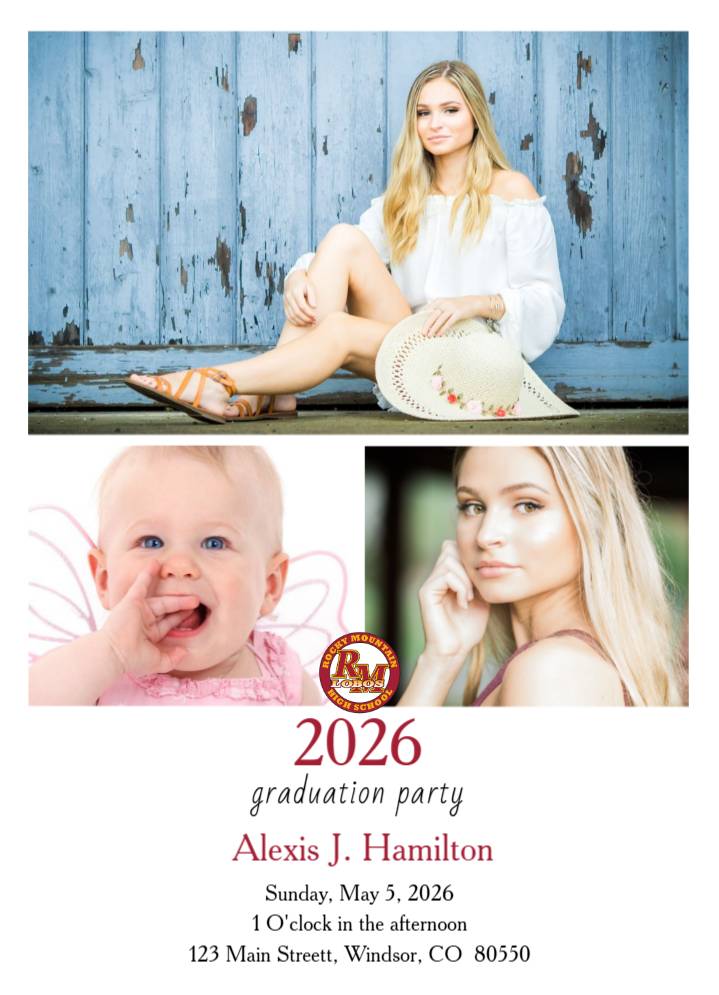 Celebrate your Rocky Mountain High School graduate with our photo graduation party invitation.