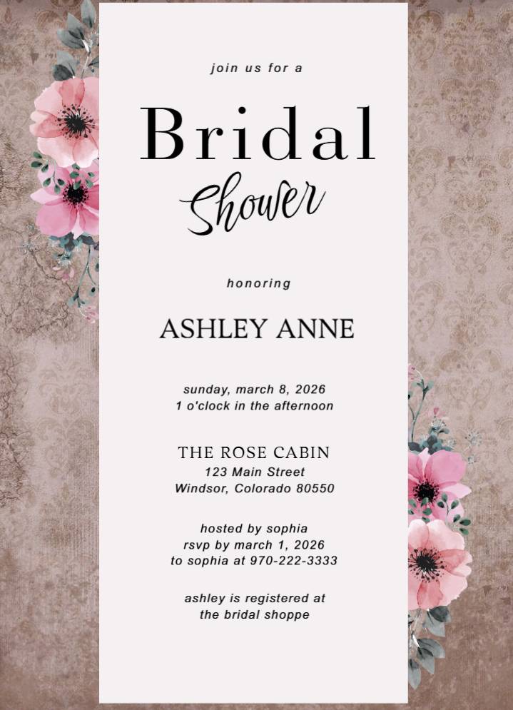 Rose Bridal Shower Invitation