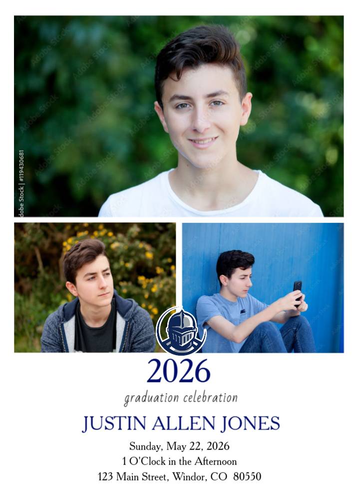 Personalize with the graduate’s name and date. Upload photos and you can also add a personalized message on the back and your return address to the envelopes.