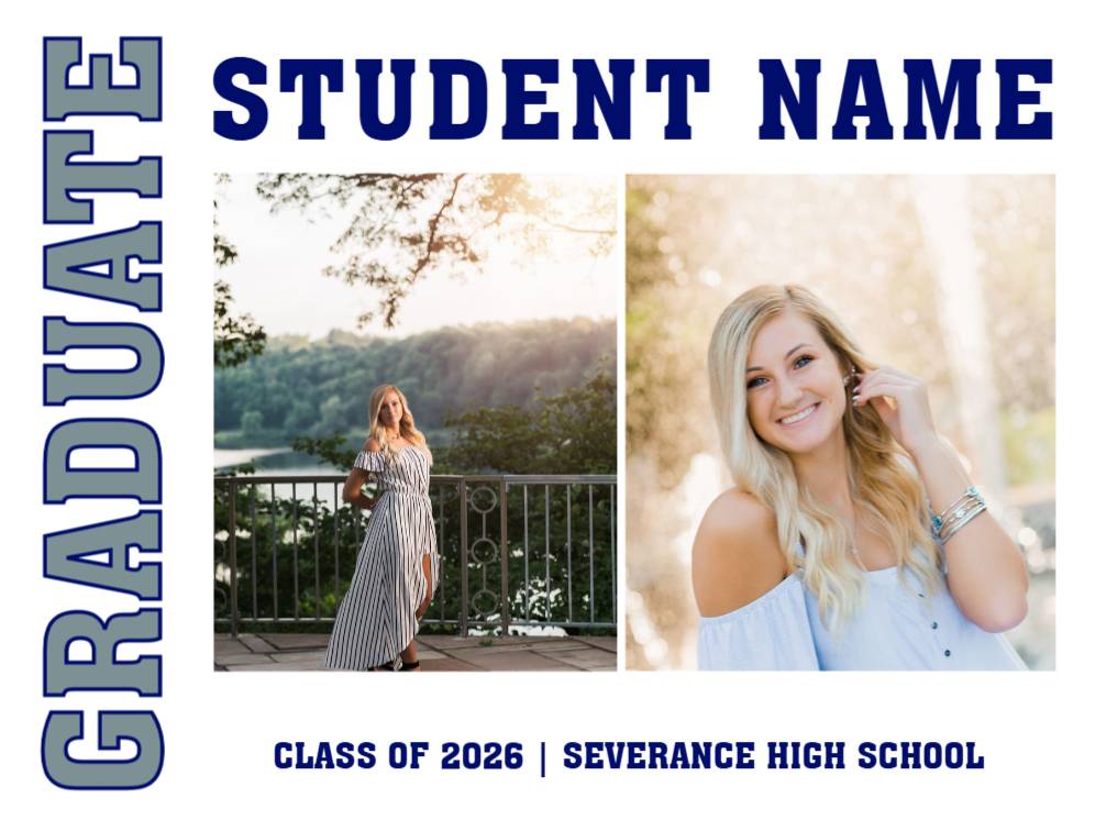 Severance HS Congratulations Graduate Varsity photo yard sign.