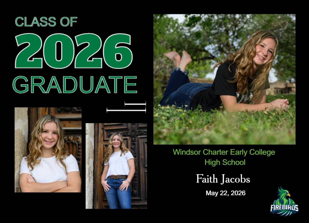 Celebrate your Windsor Charter Early College High School Firebirds  graduate with this 3 photo graduation announcement.