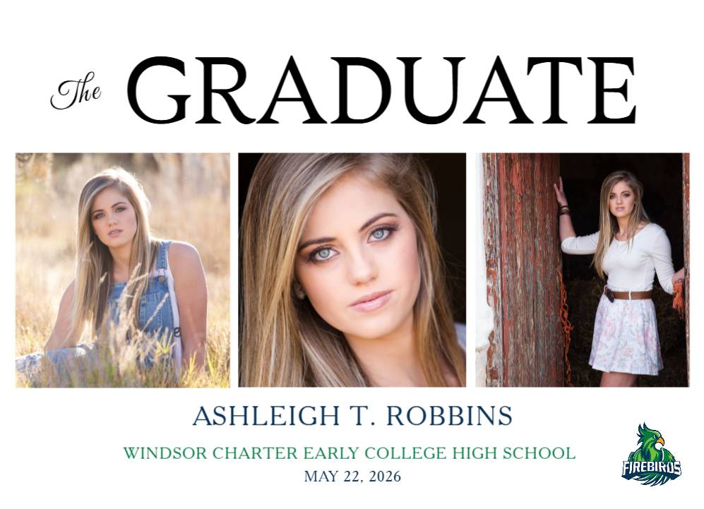 Celebrate your Windsor Charter Early College High School graduate with this 3 photo graduation announcement.