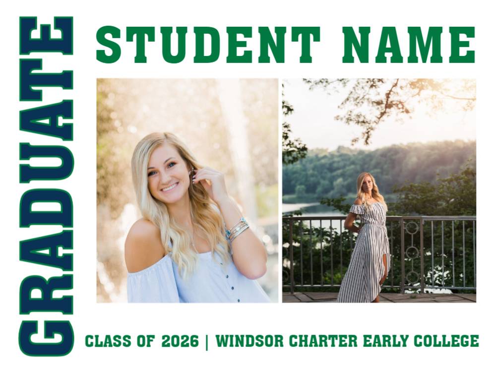 Windsor Charter Early College High School Graduation Varsity Photo yard sign.